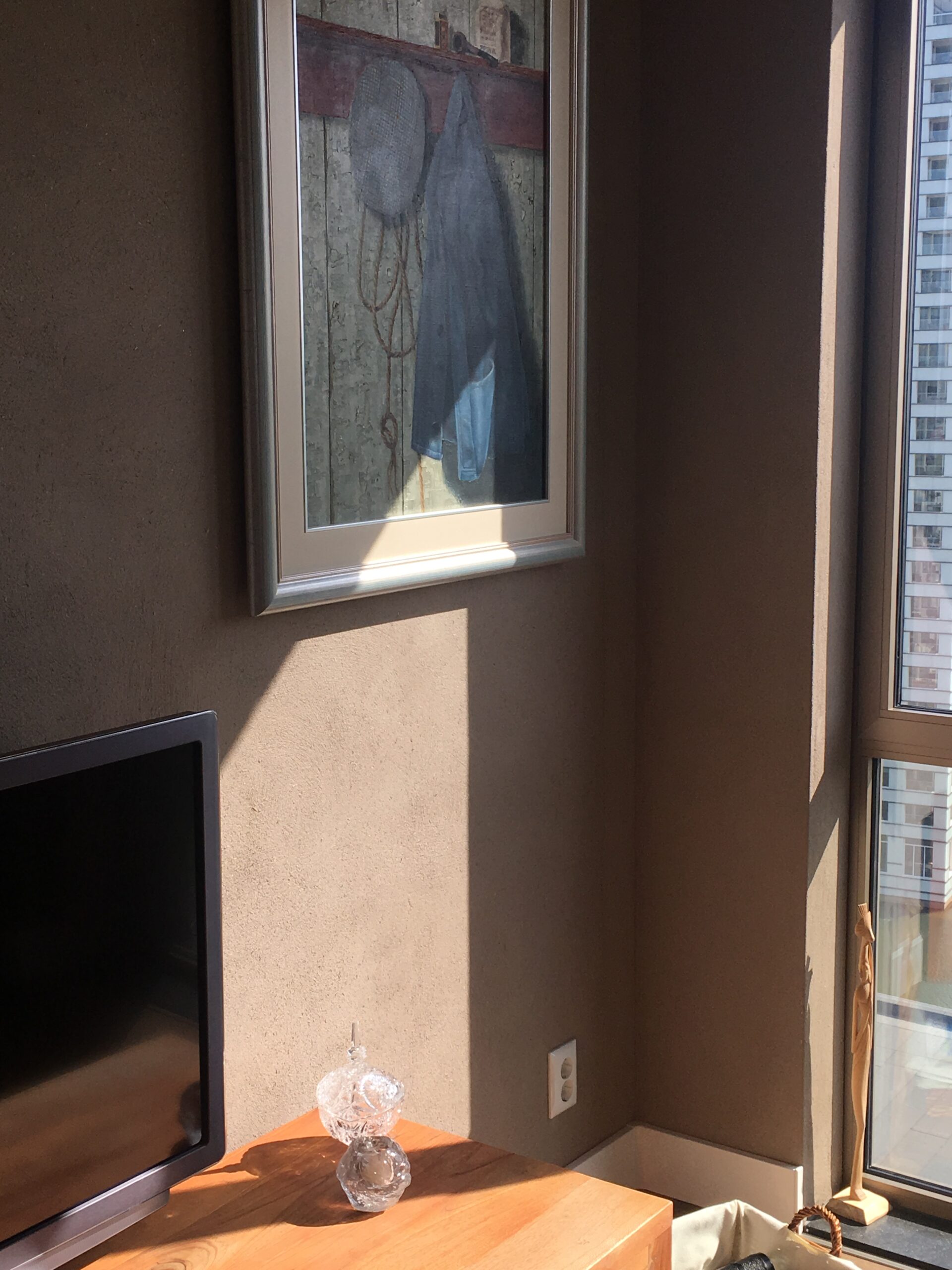 Door de keuze voor een ademde afwerking op de wanden, leemstuc, is het binnenleefklimaat van de bewoner (met astmatische aandoening) aanzienlijk aangenamer geworden.